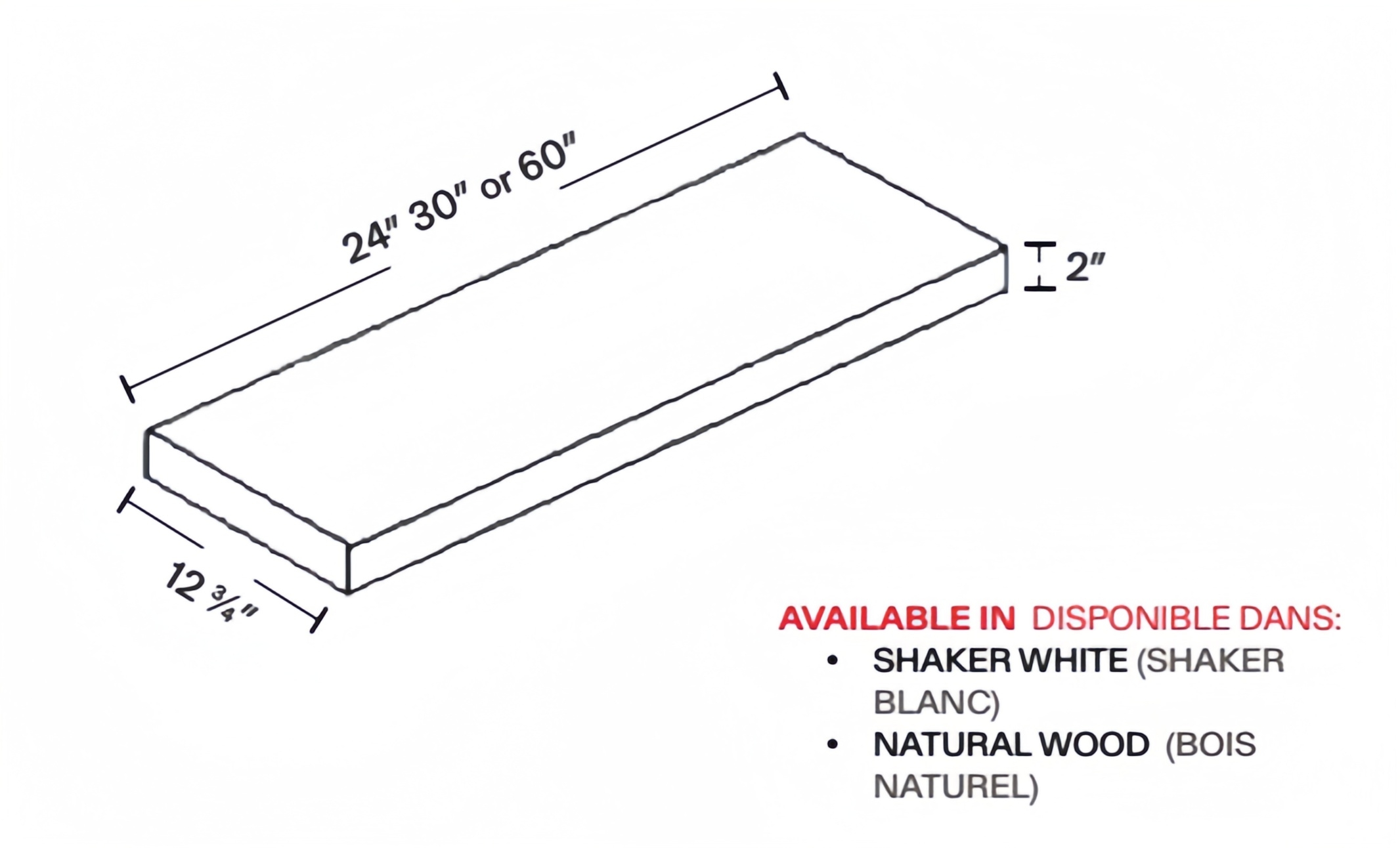 30" x 2" x 12 3/4"
